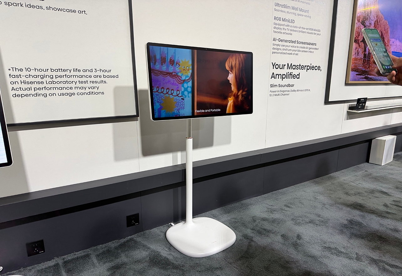 The Hisense S6 FollowMe display clearly takes inspiration from the LG Smart Monitor Swing, functioning as a lifestyle TV you can bring with you from room to room. It’s a smart TV with touch connectivity that you can use to stream content, make video calls, browse recipes in the kitchen, showcase artwork, or even as a smart home control hub. The 32-inch 4K UHD, anti-glare, low-reflection touch display can tilt, rotate, life, and roll on its included stand. The base is height adjustable so you can enjoy it at eye level whether you’re cooking in the kitchen while watching an instructional video, working in your home office, or even lying in bed.
