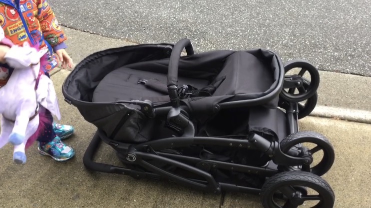 The only thing I really feel this is missing is an option for kids that are a fair bit older than their younger sibling. I think you’ll probably be discontinuing use of this type of stroller when the kids are around 3-3 1/2 years old or thereabouts. While the stroller itself weighs about 35 pounds and can probably balance weight just fine, your kids will probably outgrow the basket seats around their 3rd birthday. What do you do with a kid that’s, say, 4 and one that’s a year old? Well the latter will be fine in this stroller but there isn’t a great sitting or standing area for the older child. You might be reading this and saying that a child should be out of a stroller by that age, right? That’s a fair point but I’ve also seen 2 child strollers that had a standing area for an older child while the parent pushed. It’s a good option for “resource management,” so to speak. It’s really hard to run around and chase a 4 year old at the mall when you’ve got your hands full with a stroller.