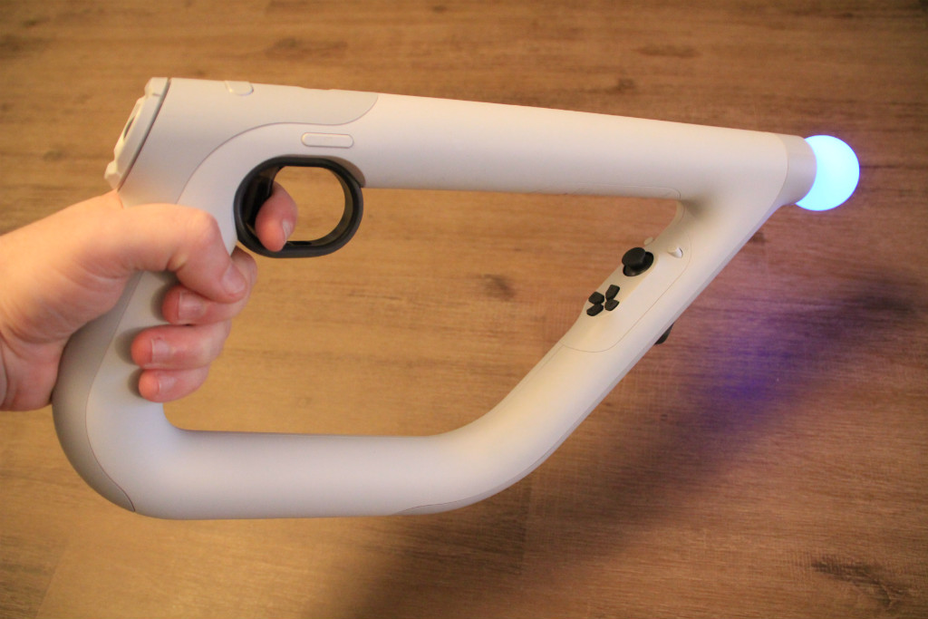 Putting the Aim Controller and PS VR headset to test in Farpoint was a thrilling experience. Being inside a vast, 360-degree VR alien world with a realistic-feeling shooting device in-hand felt like total immersion.