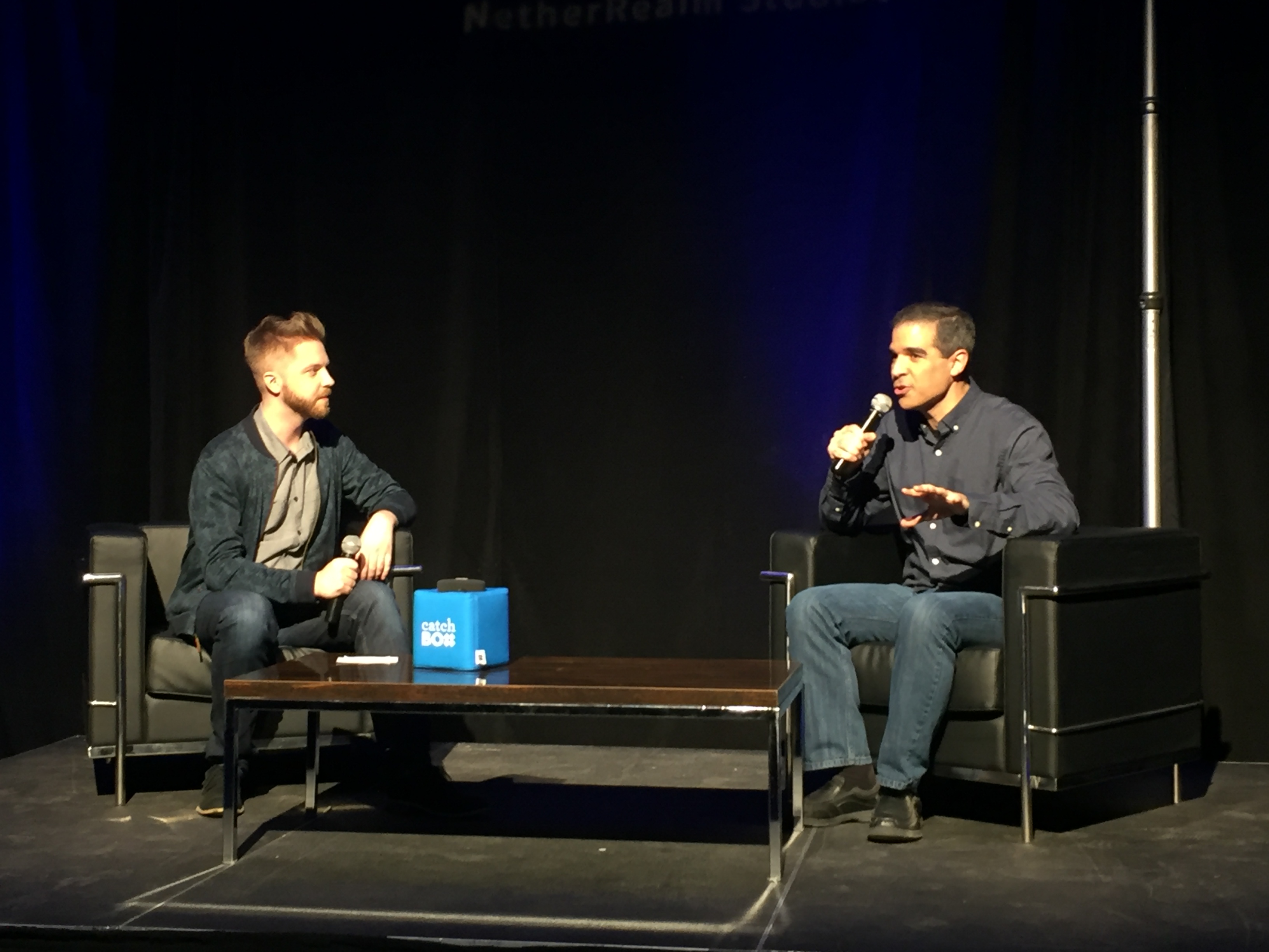 Space Channel’s Ajay Fry interviews Ed Boon | Photo credit: Evan Bergstra